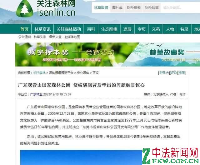 中华网报道的《广东东莞:观音山国家森林公园编修遇阻事件引社会广泛关注》