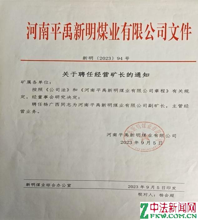 看看这个聘任通知,知情人说当时杨广西已经58岁了,且没有矿长资格证及安全资格证的他,还能通过董事会决议担任经营副矿长!