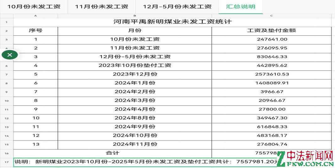 2025年12月8日,多家网络平台出现题为《河南平禹新明煤业:拖欠300工人的辛苦钱何时给》的网帖,反映河南平禹新明煤业有限公司(下称“新明煤业”)长期、大规模拖欠农民工工资问题。至今,欠薪问题仍未解决。那么新明煤业的钱去哪儿了呢?!撰稿人为此联系了新明煤业采煤队负责人谭治国等人,了解到了新明煤业公司该事件背后的企业治理与经营乱象。