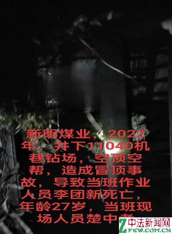 2022年6月20日0点班,新明煤业11040机巷打钻因监管不到位,空顶空帮引起冒顶事故,造成汝州市程家村村民李团新死亡,年仅27岁。