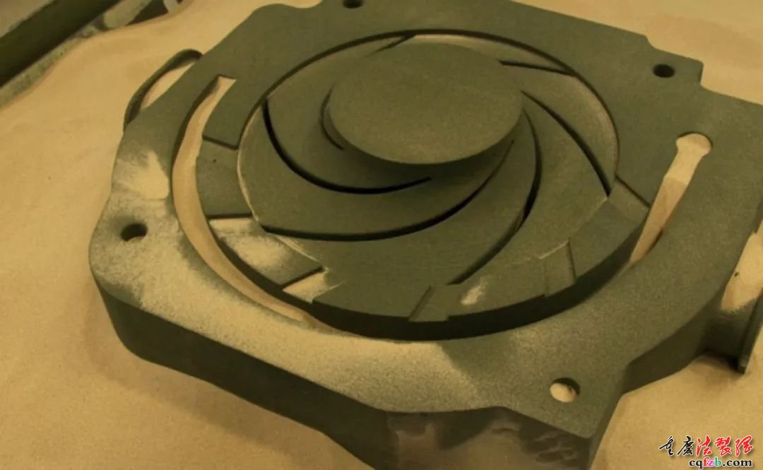 铺砂器均匀铺砂, 每一层都展现出完美的平整度。经过2000层的堆叠,中国自主设计制造的3D砂芯打印机完成了它的第一个作品。