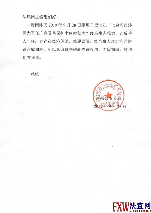 之后,法讯网收到了七台河市公安局新兴分局的发来邮件,对此法讯君将此发到微博并@平安七台河和@七台河警方求证真假,至发稿时没有得到回音。