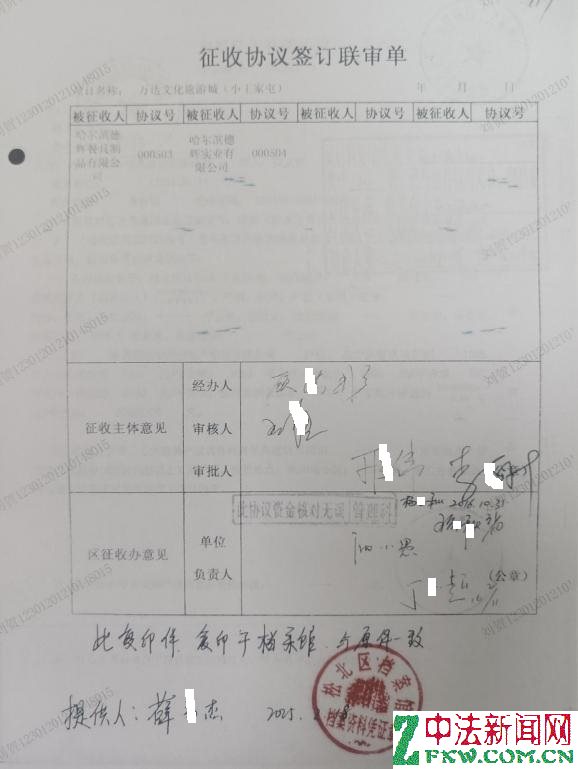 沈小愚签字的联审单,征收办只有他没有签署日期