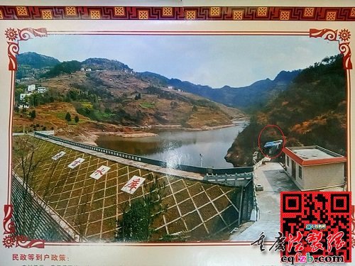 开县扶贫宣传册有该水库,右侧为管理房,红圈处的棚为杨传习搭建,在这居住2年。