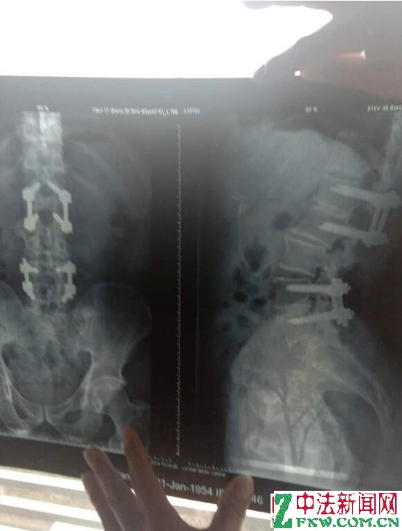 胡尖兵泣诉:2005年1月4号,胡尖兵在永康中医院由杭州117部队某专家给予他行腰椎间盘突出钢钉植入手术。手术中拿掉了他二节腰椎间盘。其中,下一节取错了。腰里植入八根钢钉,二十多根铁螺帽。却把他的腰5-骶1椎间盘突出症,给开到上节腰4-5节了,开到了腰的上一节好的腰椎间盘去了。钢钉压迫留置的下一节坏死的腰键间盘,导致神经受压迫,脚痛麻木更甚,双脚像铁丝网捆住一样,术后造成严重后遗症。腰部肌肉逐渐萎缩僵硬,无法弯腰,18年了都无法弯腰穿袜子,捡东西。经过多个省级骨科专家诊断,术后造成腰部肌肉完全萎缩僵硬。