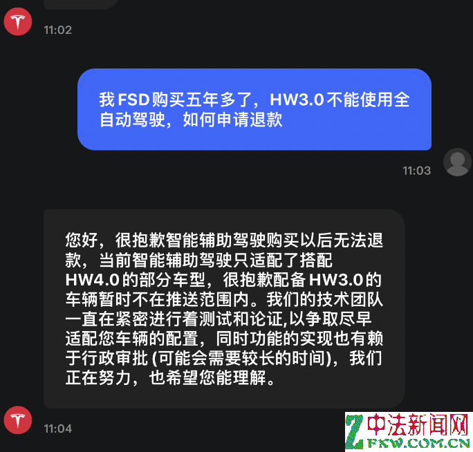 6月,7名购买了FSD功能的特斯拉车主以买卖合同纠纷为由,在北京市大兴区人民法院提起诉讼,起诉特斯拉汽车销售服务(北京)有限公司,要求特斯拉“退一赔三”,即退还购买FSD功能的费用,并支付售价三倍赔偿金。