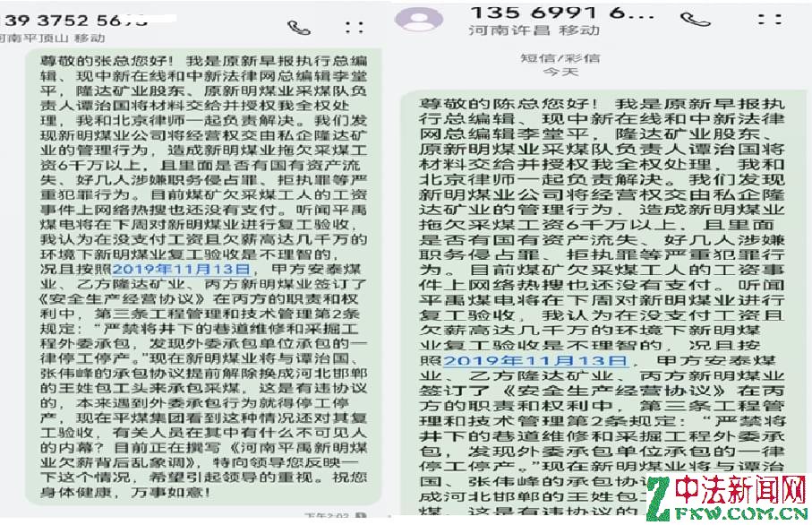 1月8日网络曝光了《河南平禹新明煤业:拖欠300工人的辛苦钱何时给》、在给“豫事办”反映情况后,禹州市人社局及豫事办工作人员电话表示不属实只欠66万元,主要原因是矿井在发放工资时,部分职工由于外出打工等因素未能到现场实名签字;区队工资册上职工姓名和工资卡不一致,导致签了字的部分职工工资未能上卡;部分职工银行卡限额,导致工资不能上卡。法询君联系工人代表后表示是乱说,于是发出《河南平禹新明煤业公司欠农民工血汗钱上热搜 许昌市禹州市政府无动于衷?》。之后“豫事办”表示重新调查,给撰稿人电话时表示禹州人社局没有和工人代表调查,光重庆籍20多名工人就有70万元工资没有发放。