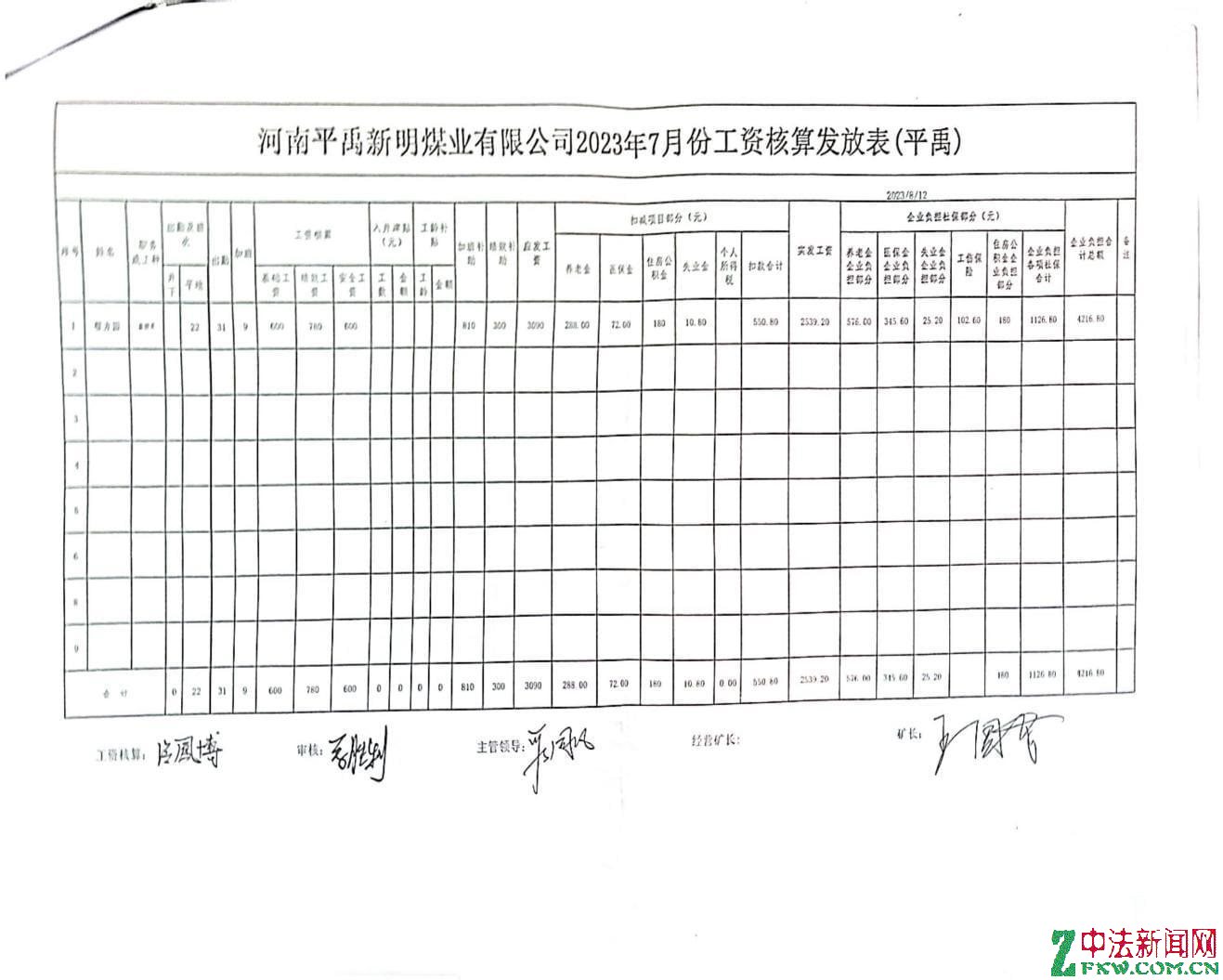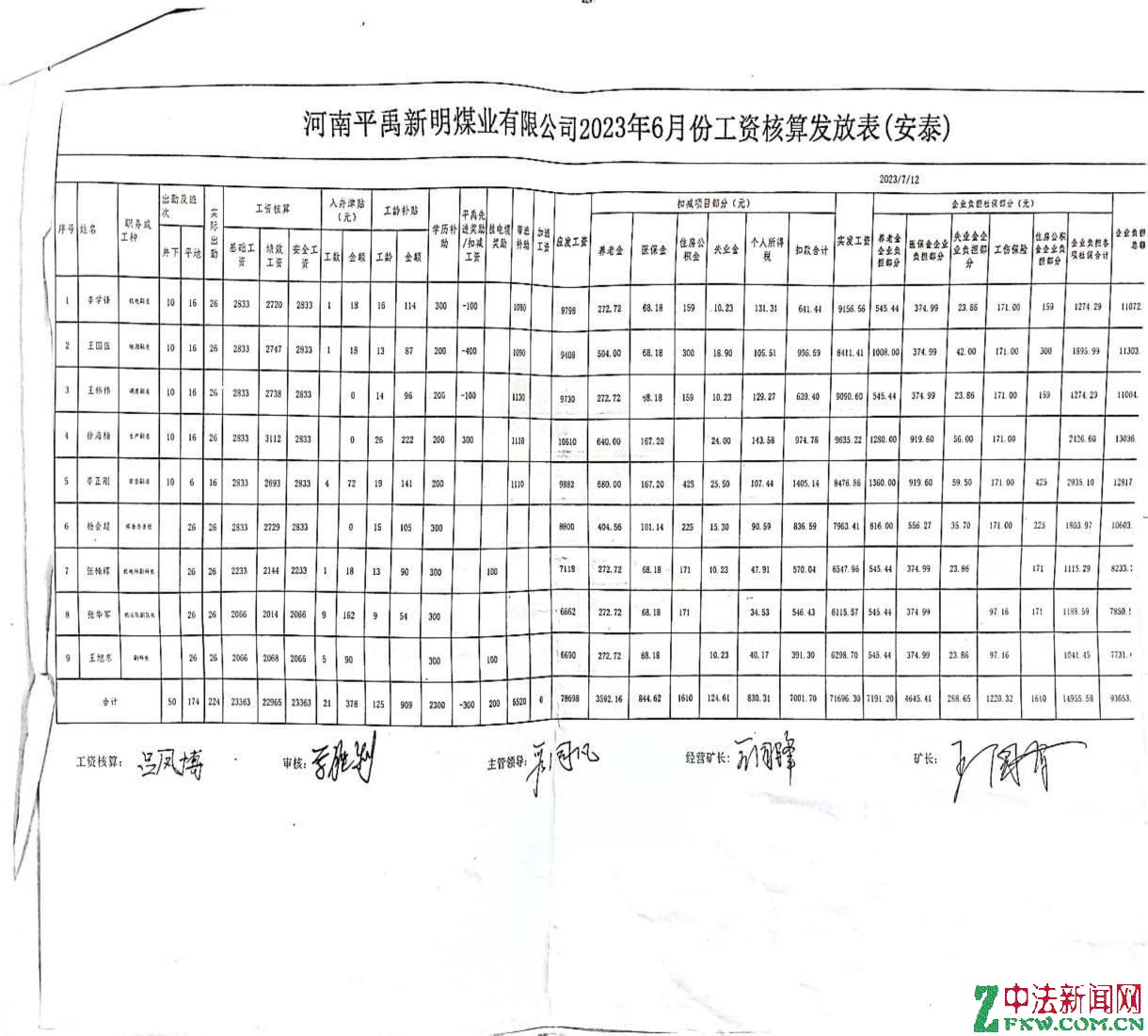 国企职工工资竟由采煤队支付。图为国企安泰煤业公司和平禹新明煤业公司的人员也由谭治国工队发放。