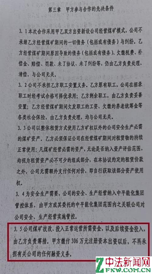 之后的《增资扩股协议》对合资协议修订了部分内容还是显得不合理:1.废止目标公司租赁乙方矿井资产经营模式,目标公司拥有资产评估范围内的所有矿井资产所有权。2.废止“目标公司技改、安全改造及日常经营所需资金由乙方单方筹措、形成资产归乙方所有”约定,目标公司生产经营所需资金,通过股东增资、借款,或者目标公司向银行融资、股东按出资比例提供担保等方式解决。3.废止甲方收取技术服务费固定回报外不参与目标公司利润分配模式。目标公司生产经营形成利润/亏损,由股东各方按出资比例享有/承担。4.修改合资协议中销售管理为“为实现区域资源合理配置与经营效益最大化目标,公司的煤炭销售纳入中国平煤神马集团销售管理体系,统一定价,统一配置。煤炭销售价格不得低于中国平煤神马集团成员企业同品种、同质煤炭对外销售价格。以质论价,价高优先......
