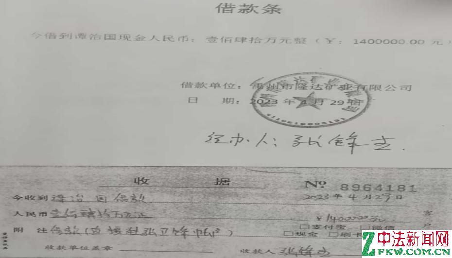 隆达矿业法人张锋杰说隆达矿业缺少资金找谭治国借了140万元,汇给其个人账户。谭治国说这笔钱不知道用在隆达矿业没,至今未还。