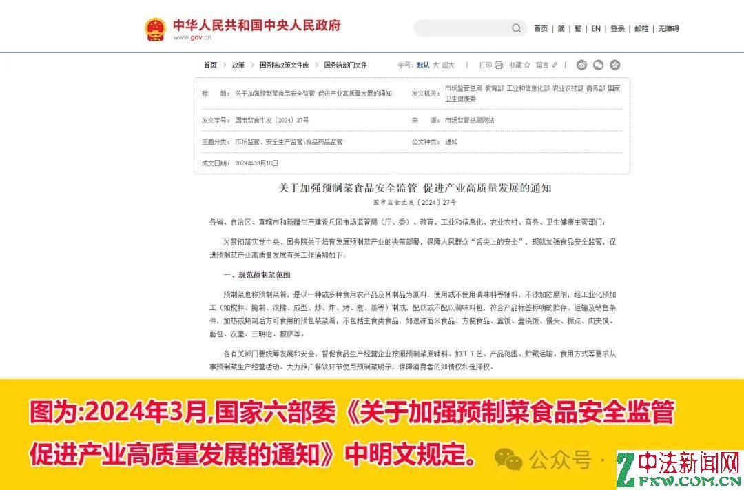 餐馆内部的“预制品”不是国家规定的“预制菜”